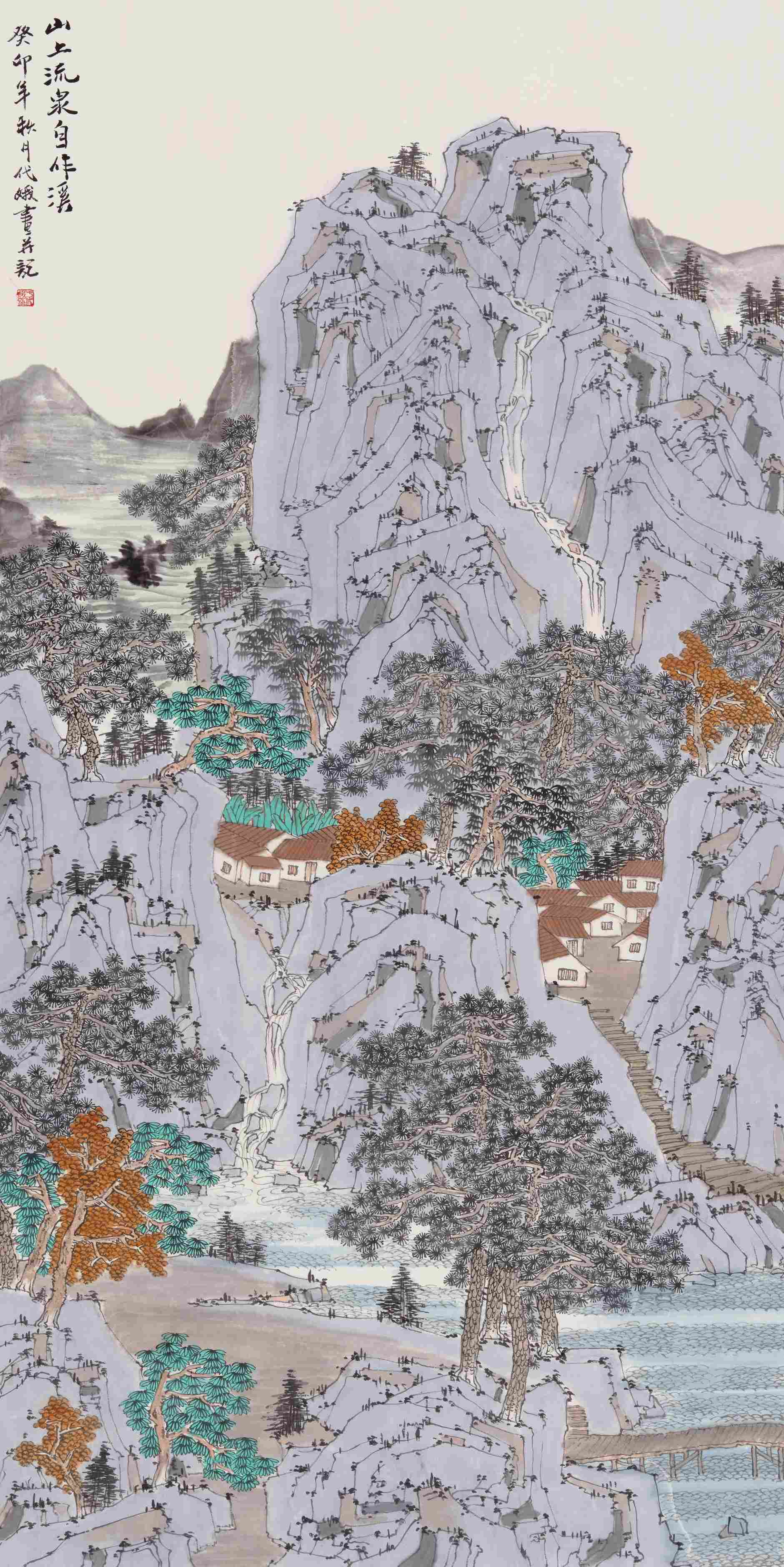 于代娥284 山上流泉138cm ×